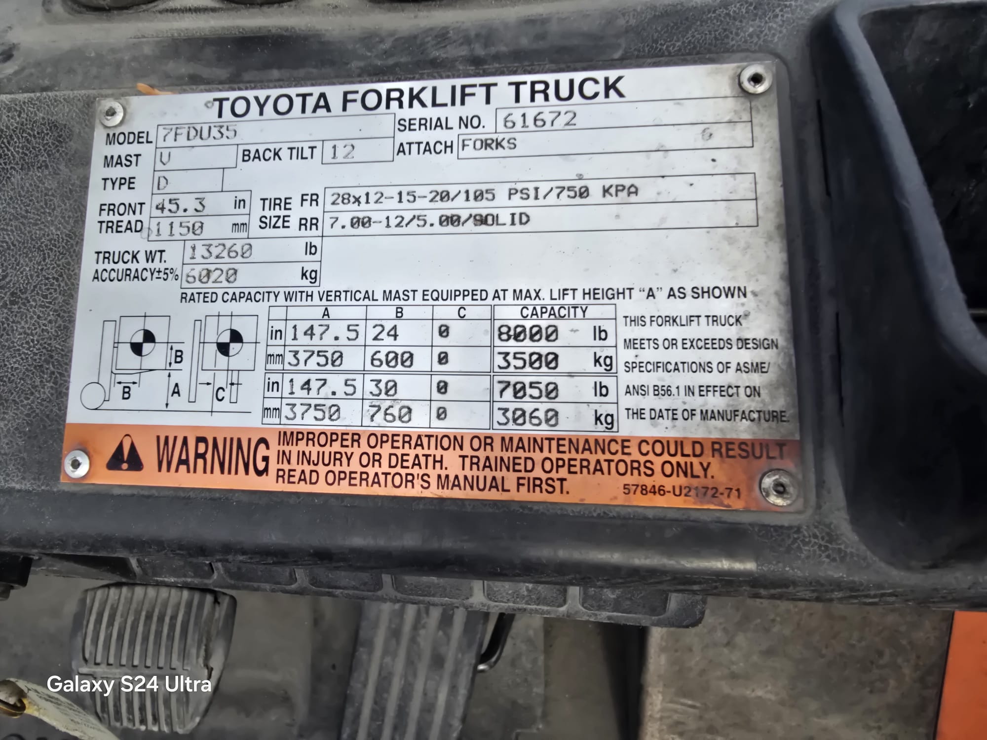 ALTERNATE CAPACITY 7050 LB 3060 KG AT 30 IN 760 MM LOAD CENTER