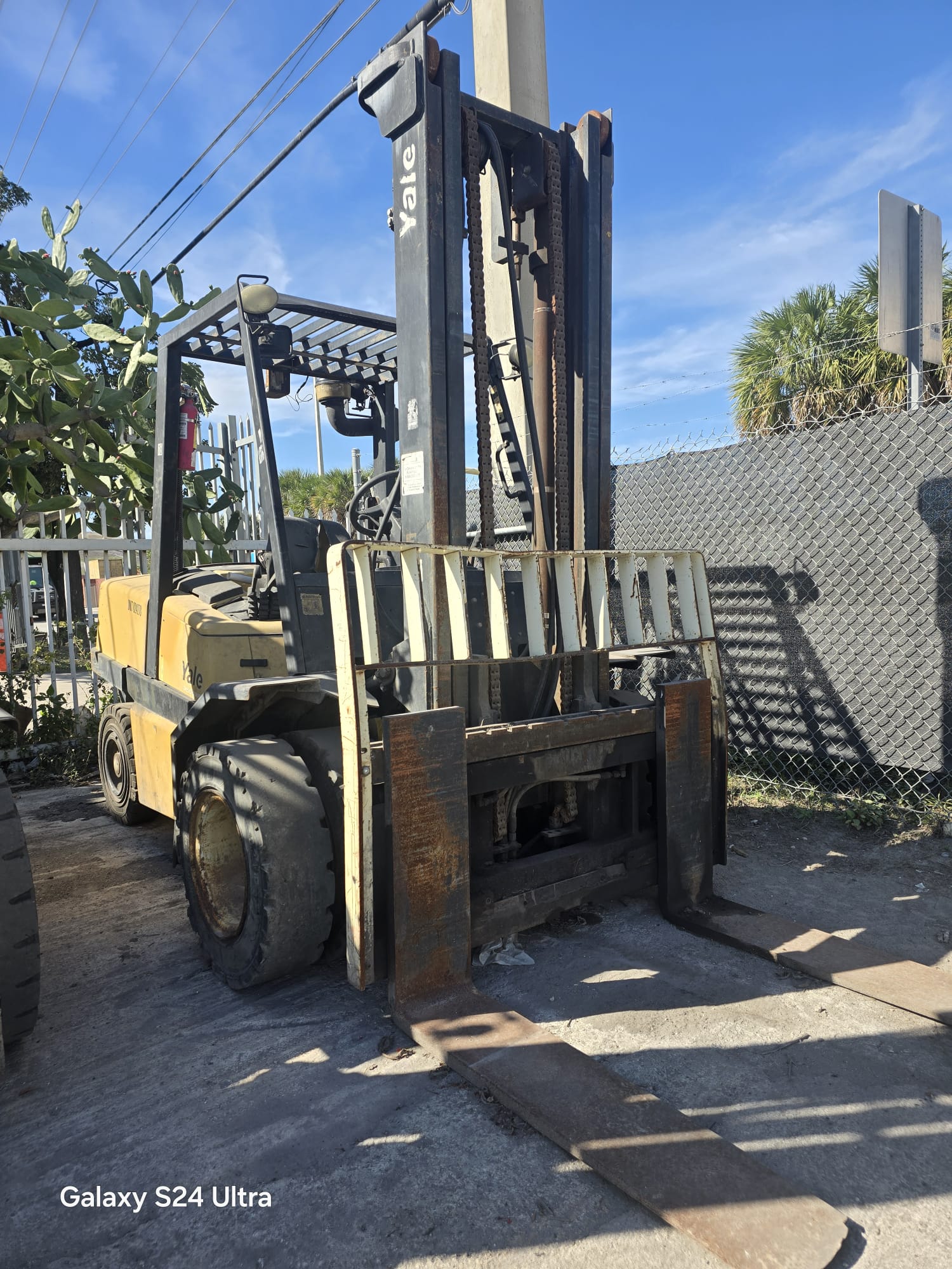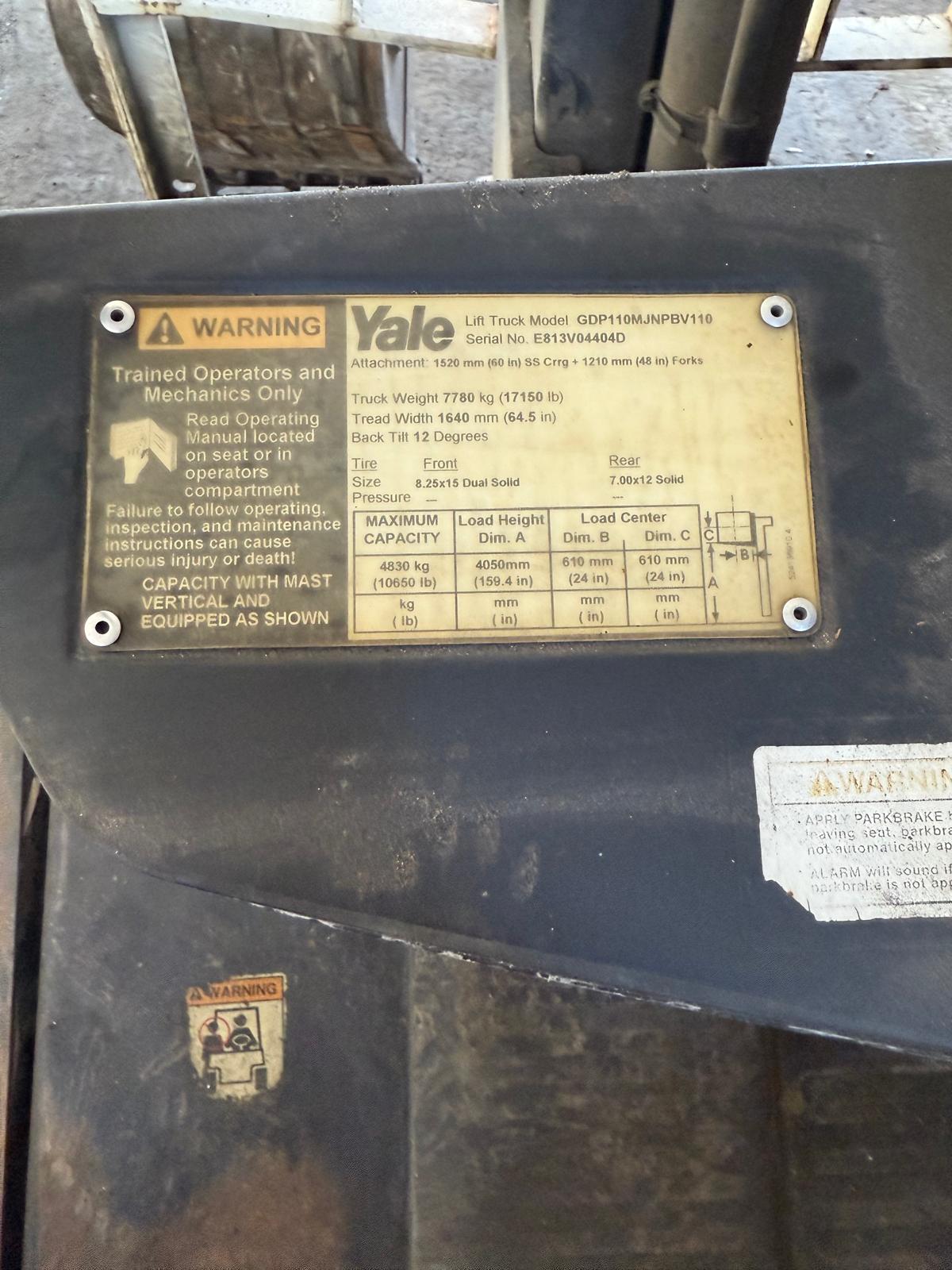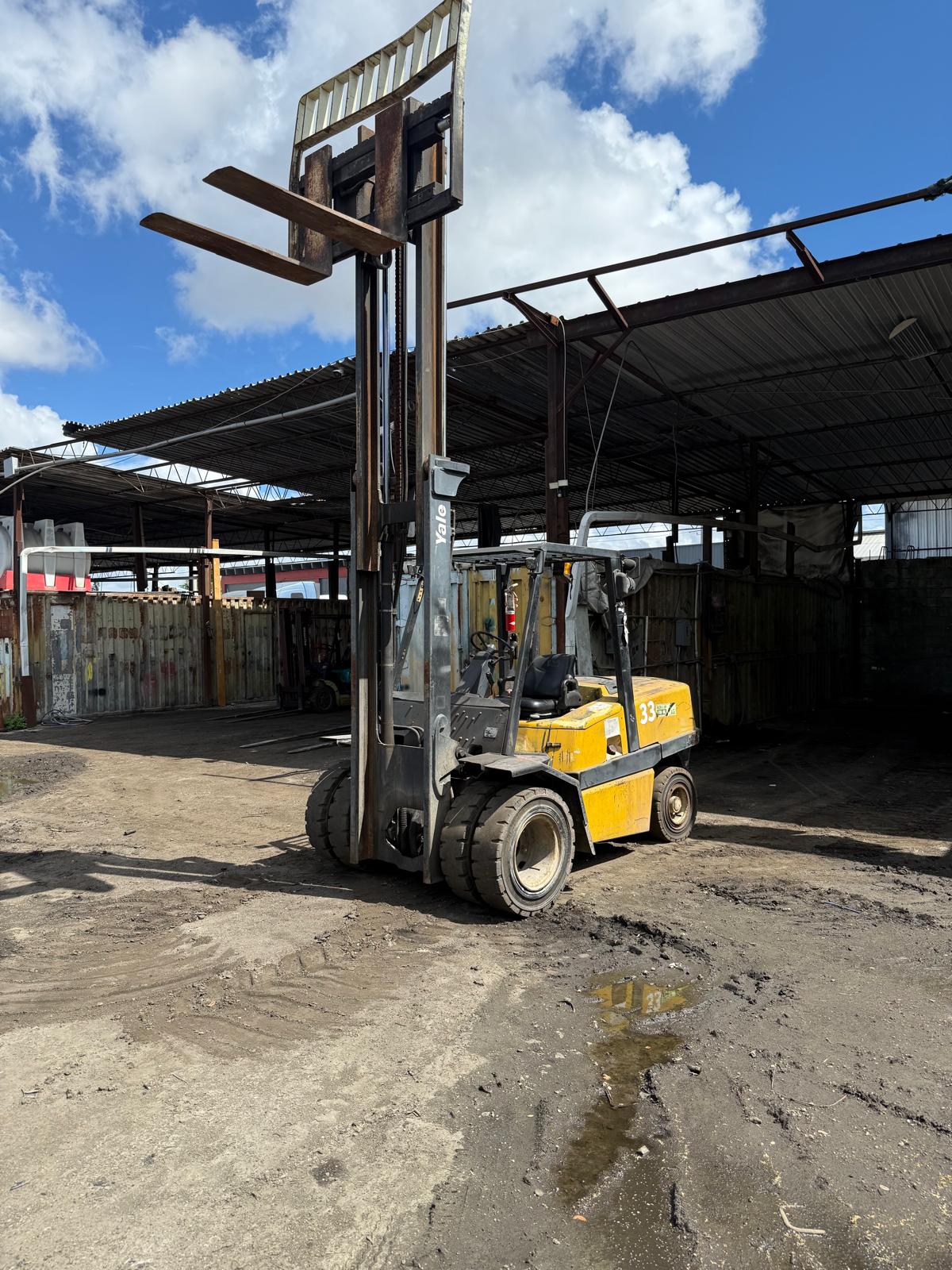 2006 YALE GDP100 DIESEL FORKLIFT 10,000 LB CAPACITY MAST 2 STAGE DUPLEX DOUBLE FRONT AND REAR PNEUMATIC TIRES REAR TIRES HEAVY DUTY INDUSTRIAL FORKLIFT 2 UNITS FOR SALE READY TO WORK FOB: MIAMI FL SE HABLA ESPAÑOL