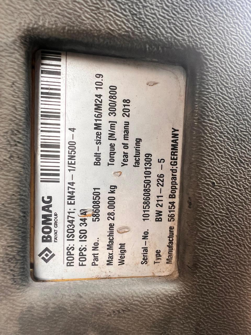 2018 BOMAG BW211 D-40 HYDROSTATIC DRIVE VIBRATORY